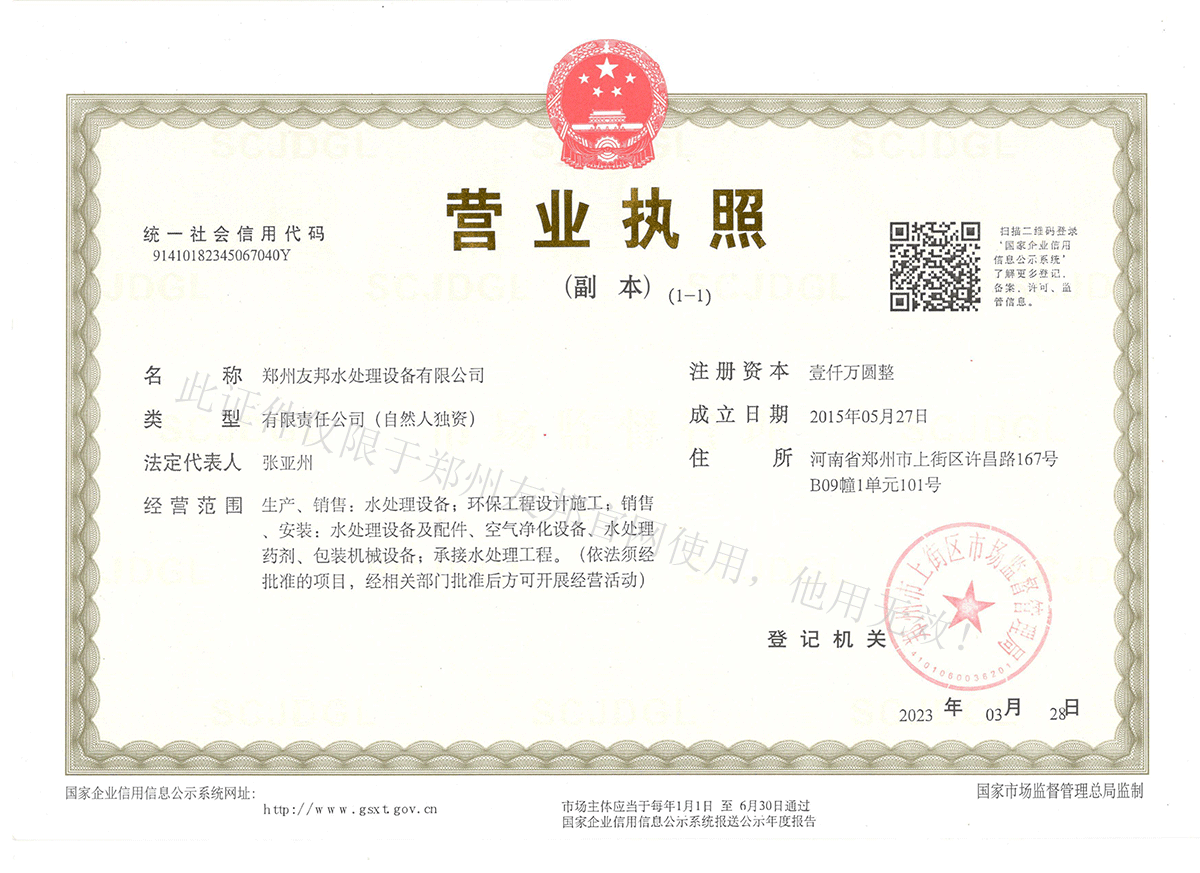 鄭州友邦水處理設(shè)備有限公司——營業(yè)執(zhí)照