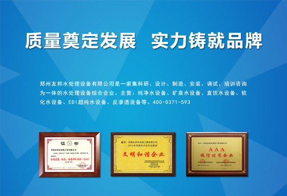 鄭州友邦水處理設(shè)備有限公司始創(chuàng)于2003年。自成立以來,友邦始終堅(jiān)持以“客戶利益為保障”的原則,打造友邦口碑,備受客戶的認(rèn)可和信賴。鄭州友邦是一家專業(yè)從事水處理